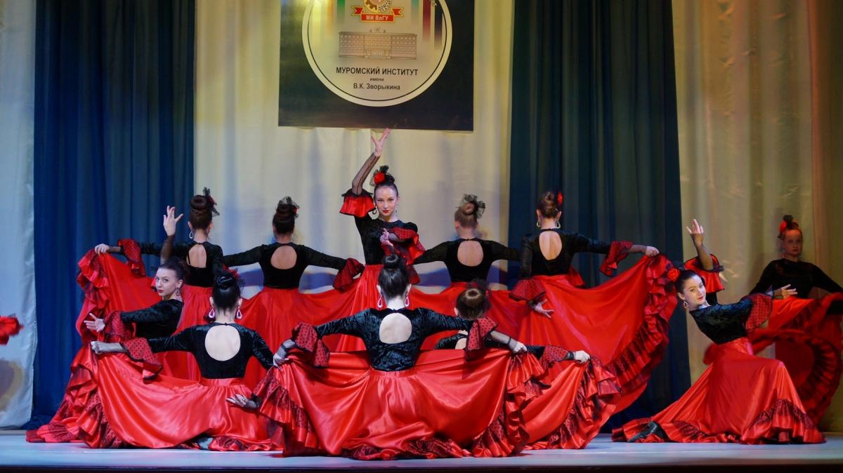 Зажигательные танцевальные номера коллективов современного танца, великолепные вокальные номера группы «Фаворит», выступление коллектива народного танца «Джус», и коллективная песня студентов Колледжа МИВлГУ не оставили равнодушными зрителей.