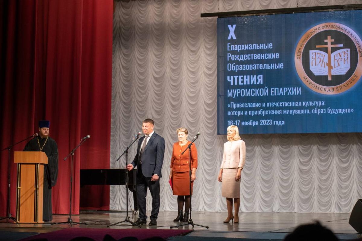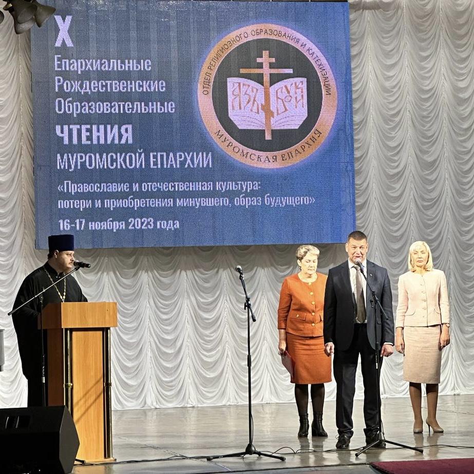 Директор Муромского института принял участие в X Епархиальных Рождественских чтениях: "Православие и отечественная культура: потери и приобретения минувшего, образ будущего», которые торжественно открылись сегодня в Муромском городском театре. Обращаясь на пленарном заседании с приветственным словом к участникам чтений, он отметил важную роль культуры в образовании и воспитании детей и молодежи. Изучая культуру нашей страны, которая неотделима от культуры Православия, каждый обучающийся знакомится с тысячелетними знаниями, нравственными основами и духовной культурой, хранительницей которых является Православная Церковь. Аркадий Львович пожелал участникам чтений плодотворной работы и подчеркнул, что современное образование невозможно без воспитания личности человека.