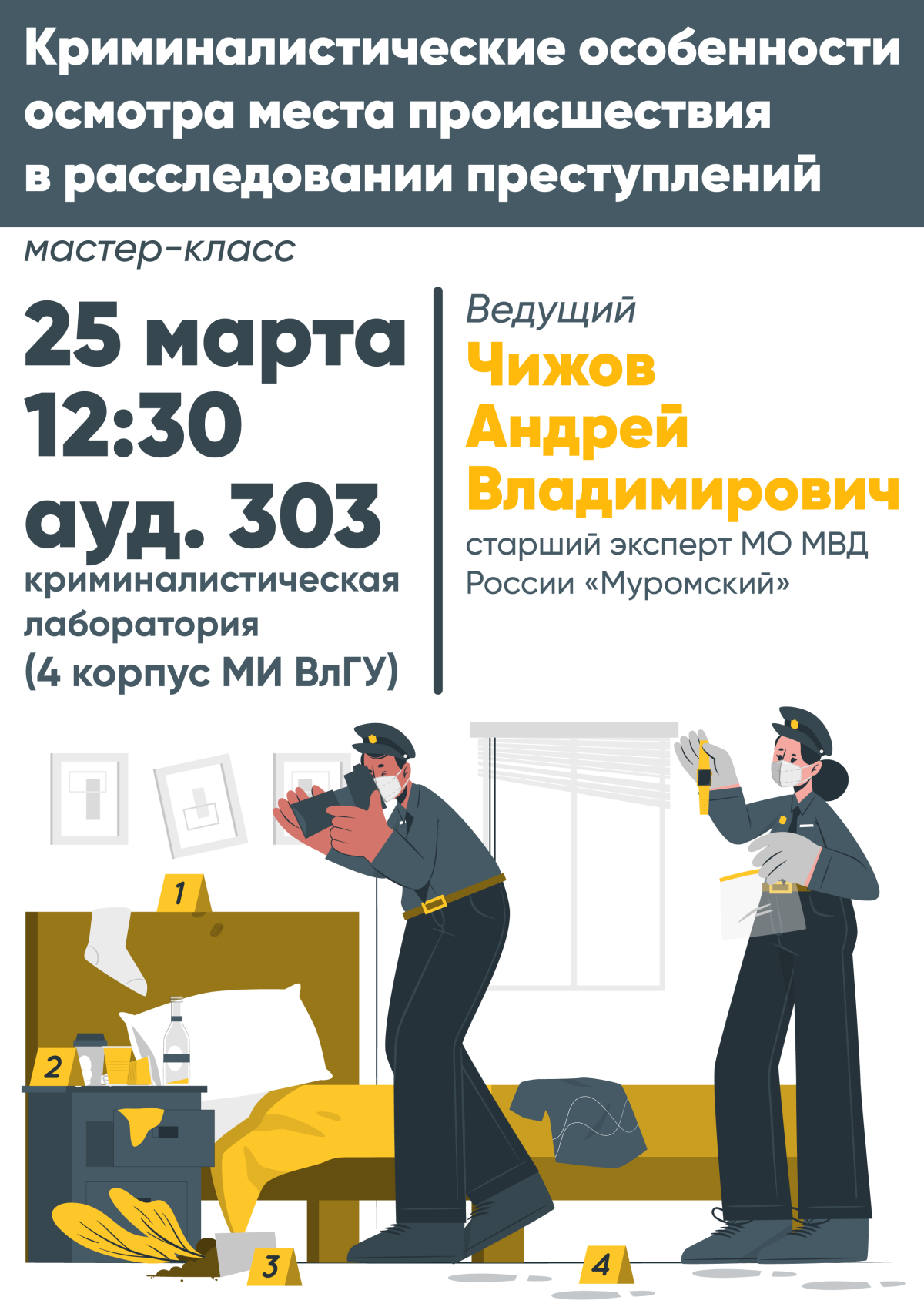 Приглашаем студентов кафедры юриспруденции на мастер-класс старшего эксперта МО МВД России «Муромский» Чижова Андрея Владимировича