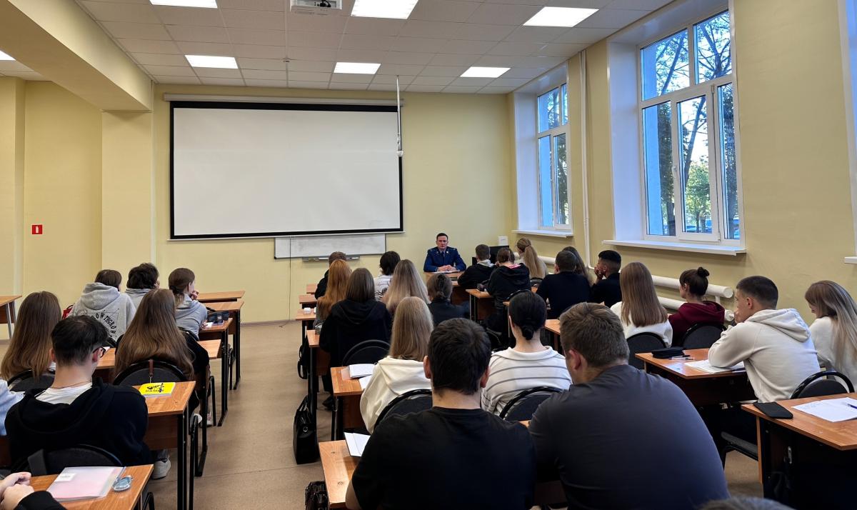 Владимир Сергеевич рассказал студентам о процессуальных аспектах работы прокуратуры, поделившись не только теорией, но и богатым личным опытом. Он поделился опытом прокурорской работы, привел яркие примеры из своей практики и честно говорил о трудностях, с которыми сталкиваются правоохранители. Особый акцент был сделан на важности их миссии по сохранению правопорядка и неукоснительному выполнению закона. Лекция переросла в живой и открытый диалог о правовом просвещении и мерах профилактики.