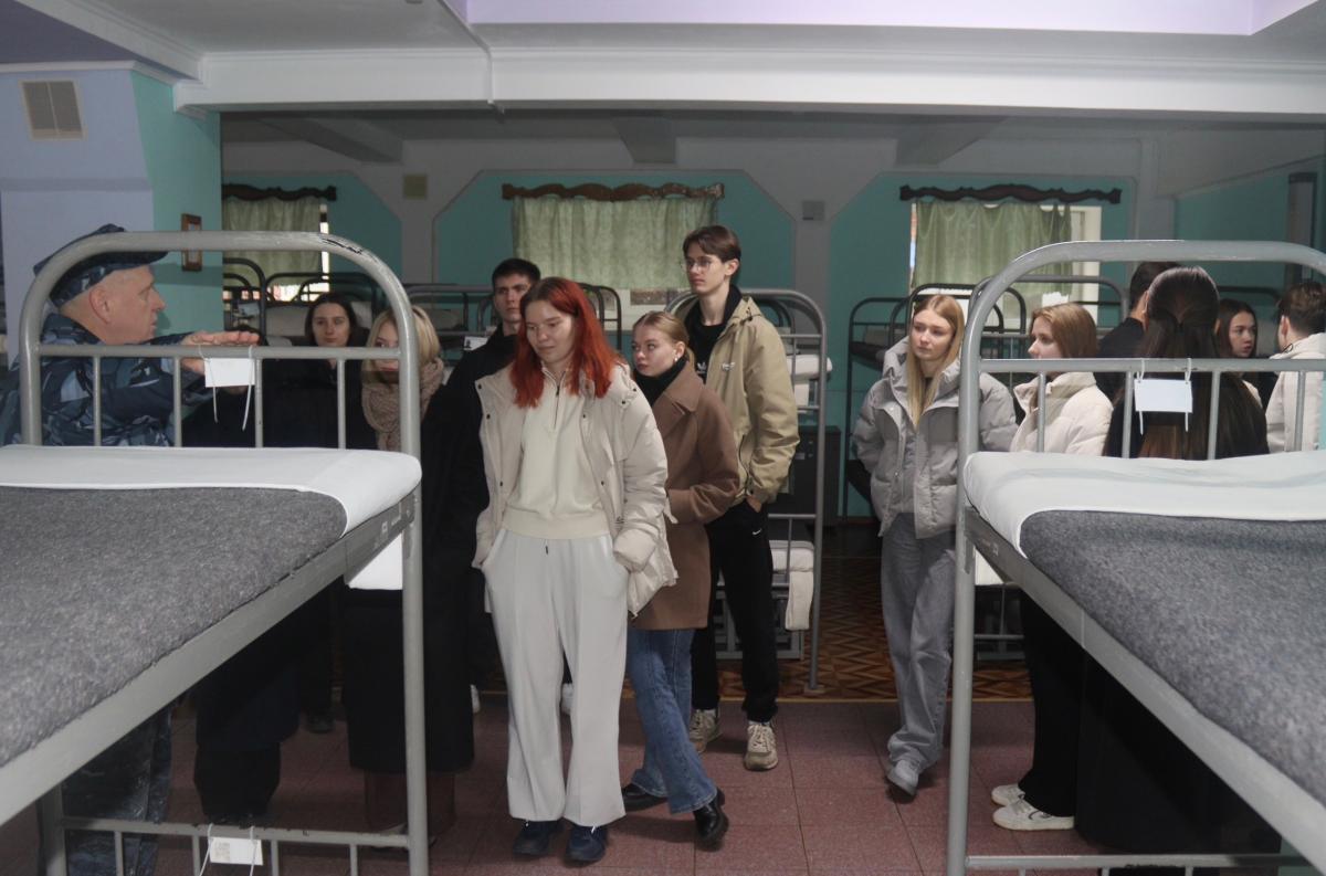 Для наших студентов это возможность увидеть работу закона в действии: от дежурной части до жилых помещений — как именно правовые нормы воплощаются в ежедневный распорядок и безопасность. Пребывание в стенах колонии позволяет понять особую сторону судебных решений: куда и в какие условия попадают люди после вступления приговора в силу. Увиденное помогает прийти к взвешенной и справедливой работе будущих правоохранителей. Посещение столовой, клуба и библиотеки показало, как соблюдаются права осужденных на питание, досуг и образование.