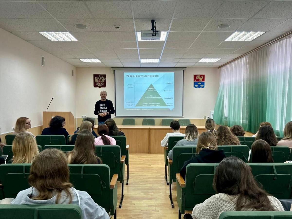 Участники разбирались, с чего начинается настоящая эффективность. Пришли к выводу: трудолюбие без ясной цели — это бег на месте. Важно сначала осознать свои внутренние ценности — именно они задают вектор развития. Затем Александр Андреевич обсудил со студентами, как выстраивать ближайшие и глобальные цели, и как совместить личные амбиции с профессиональными, чтобы достичь гармонии.