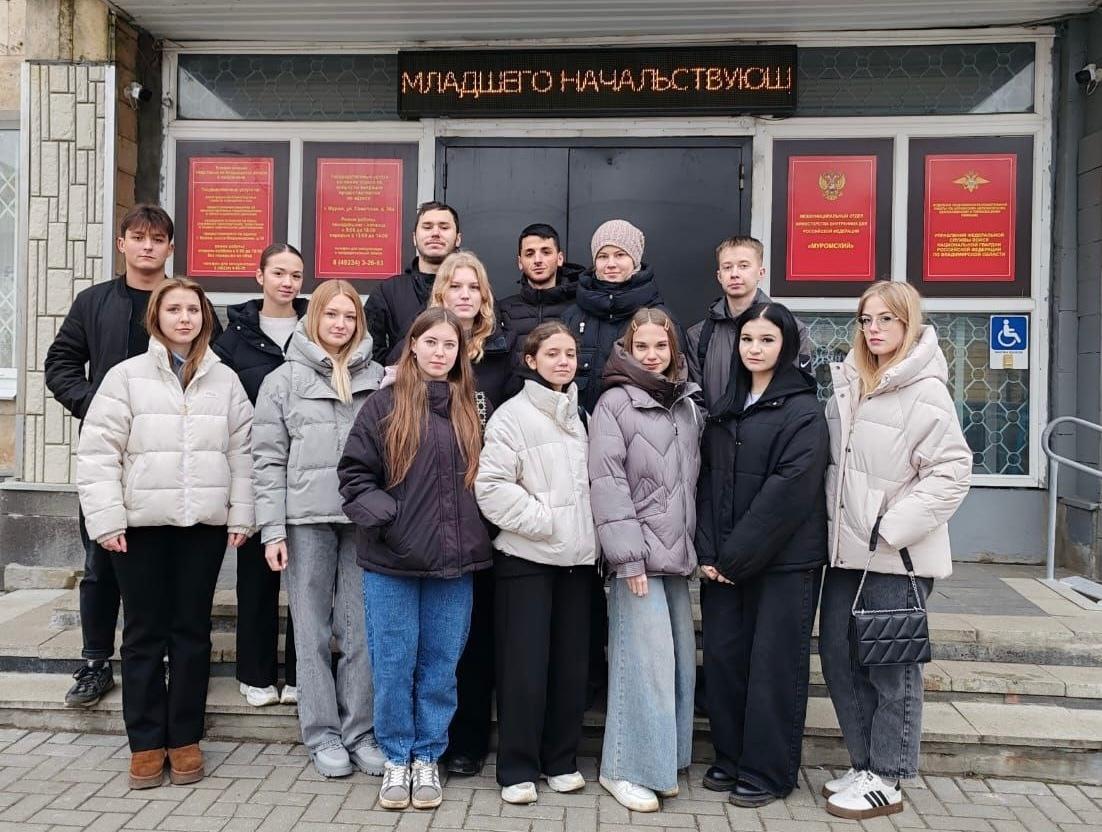 Сотрудники и ветераны МВД провели для будущих юристов интересную лекцию и рассказали об истории создания органов внутренних дел в городе, о роли сотрудников МВД в обеспечении порядка и безопасности. Студенты узнали о подвигах муромских правоохранителей в мирное и военное время, познакомились с образцами обмундирования, снаряжения и оружия сотрудников милиции и полиции, рассмотрели хранящиеся в музее фотографии и документы разных эпох, боевые знамена и письма сотрудников времен Великой Отечественной войны.