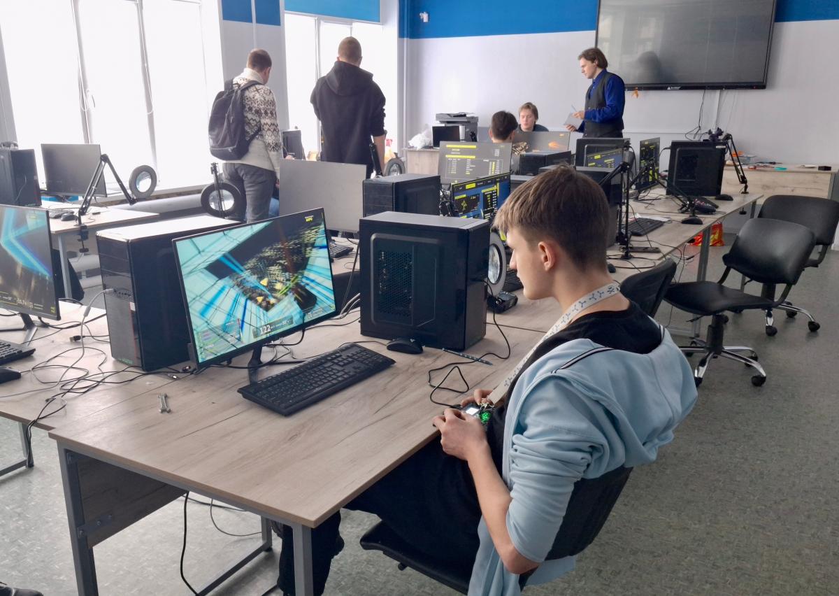 В номинации «Технический симулятор» участникам нужно было за минимальное время пройти сложную трассу в условиях городской застройки, управляя виртуальным дроном с помощью джойстика.