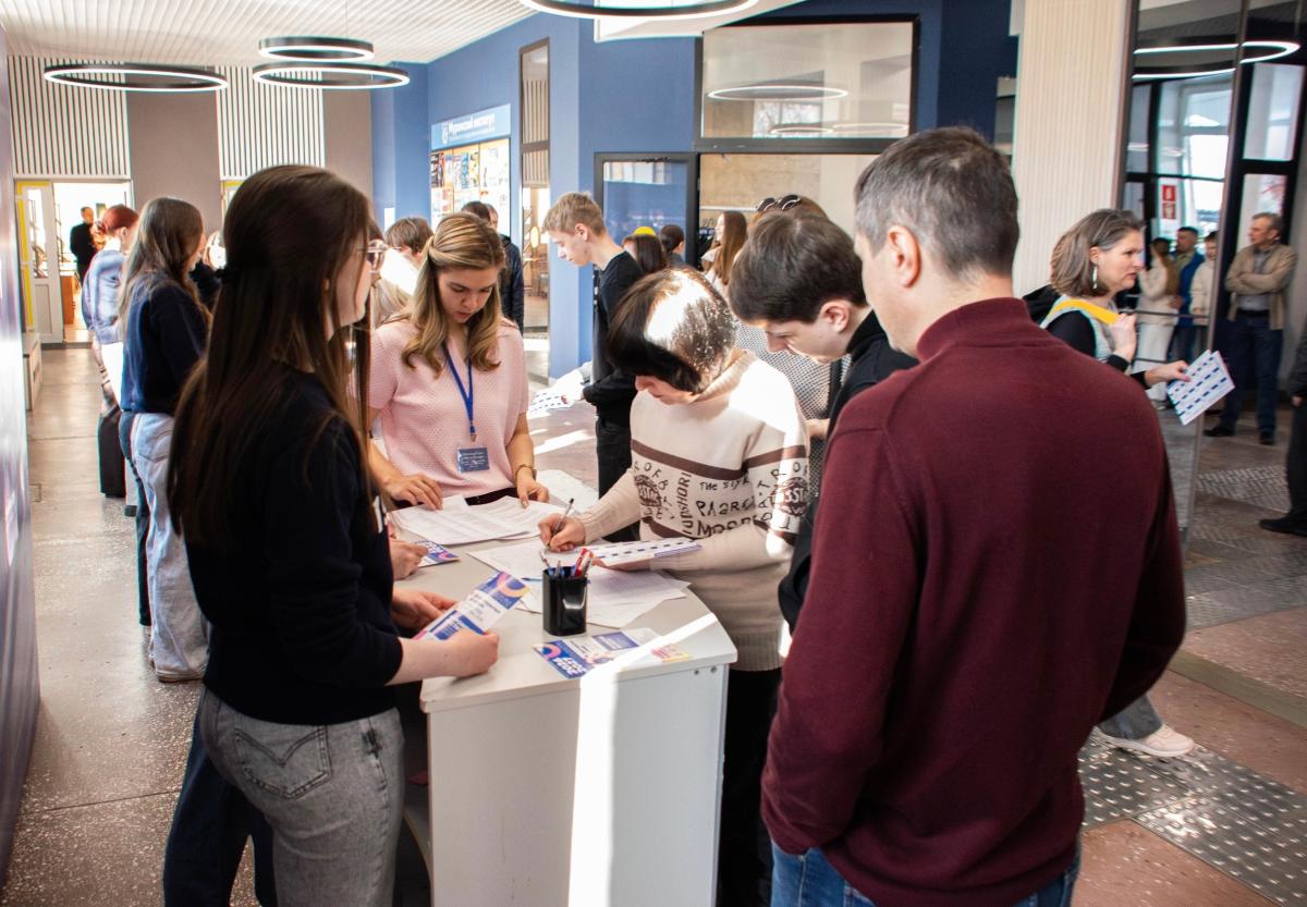 День открытых дверей в Муромском институте ВлГУ собрал в актовом зале главного корпуса более 400 человек. Будущие абитуриенты из Владимирской, Нижегородской и Рязанской областей приехали с родителями, чтобы увидеть институт изнутри еще до того, как примут решение о подаче документов.